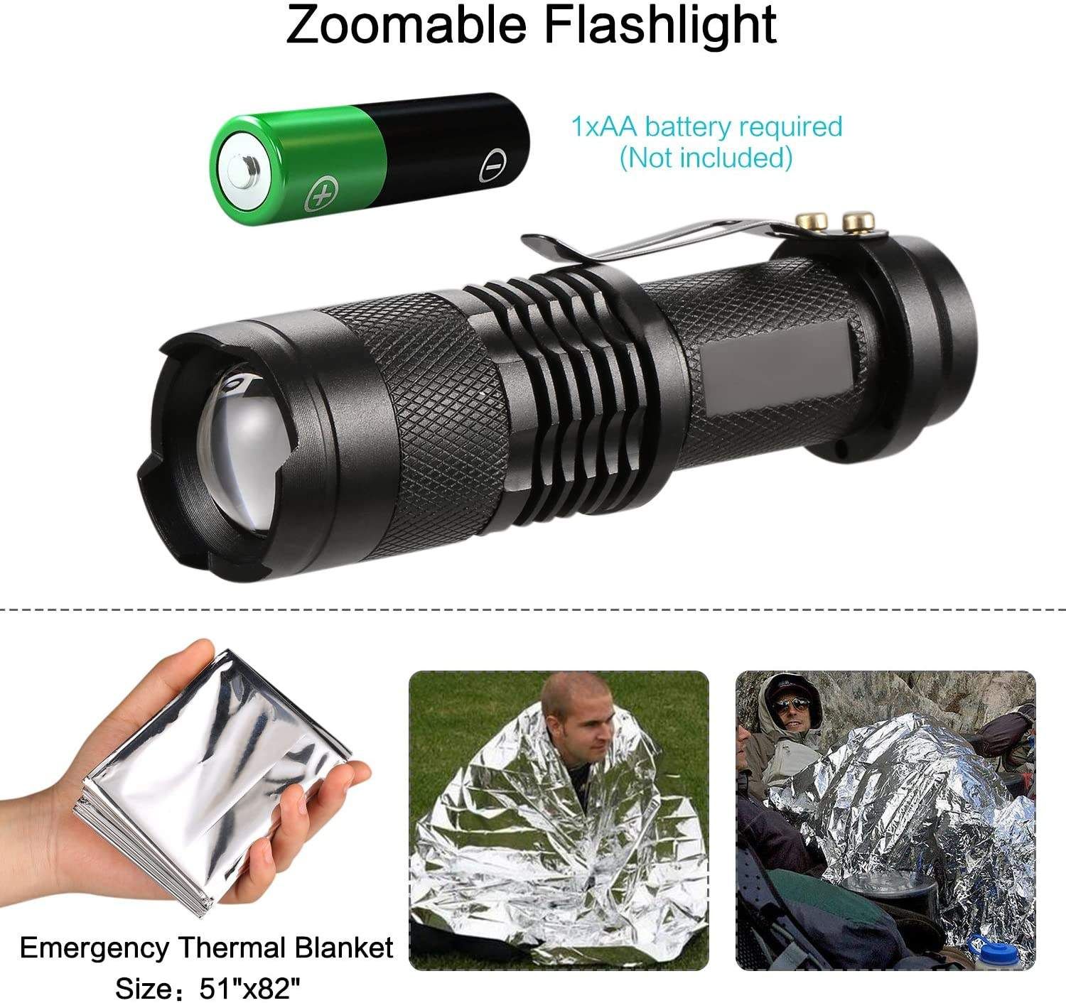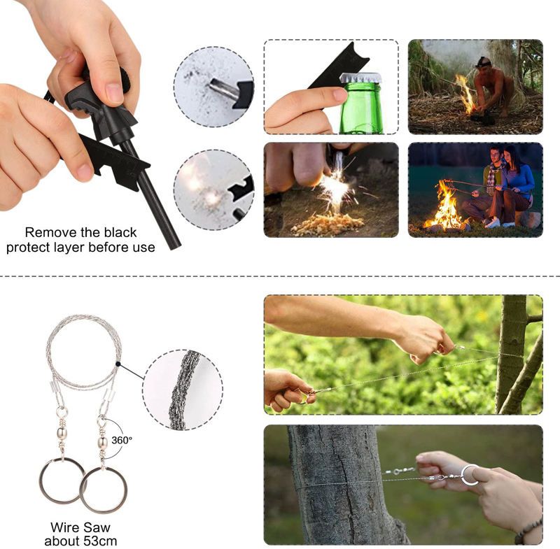 14-in-1 survival tool kit - It's a necessity for camping, hiking, fishing, as well as various survival and emergency situations. This survival kit for any outdoor adventurers,  campers, hikers, hunters, boy scouts